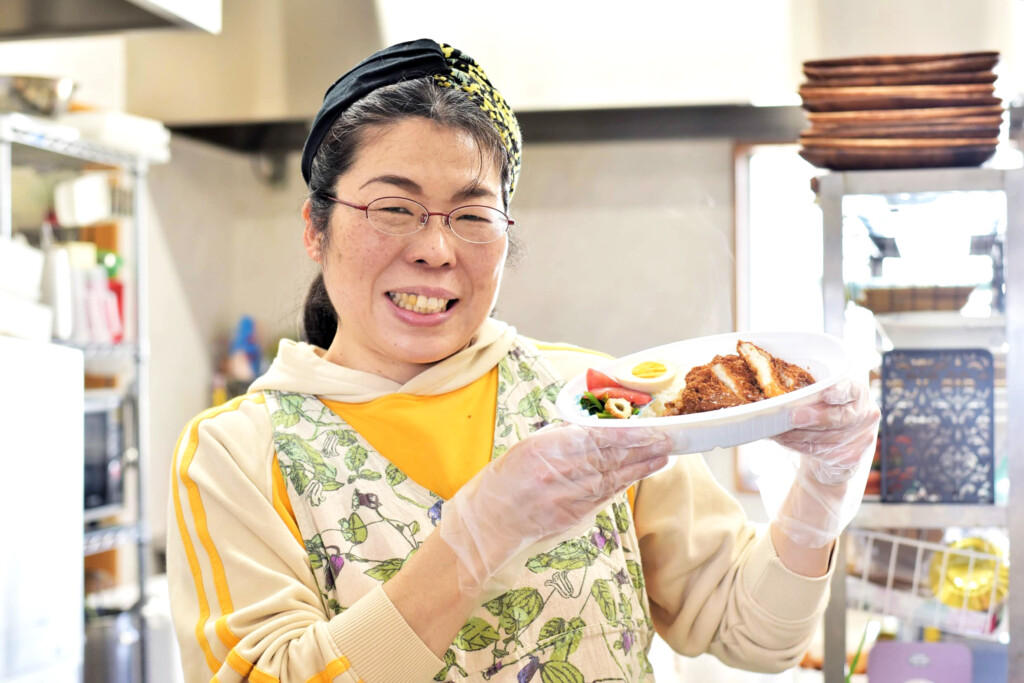 次の活動は勢いとノリなんですけど、農家さんと繋がるようになって、野菜を使った料理などで農家さんの野菜を広めたいなという思いが出てきたんです。でも自分でお店をするとかは考えていなくて。場所もないですし。そうしたら、子ども食堂をしたいという方が『COCOKARA』(※市役所が運営するチャレンジショップ)のことを市役所に聞きに行こうと誘ってくれて、流れで「かつめし」のお店をすることになりました。それで始めたのが『元氣ごはん食堂』です。加西市の農家さんの野菜を使ってお惣菜を作り、「かつめしで加西を元気にしたい」という気持ちを持ってチャレンジしました。