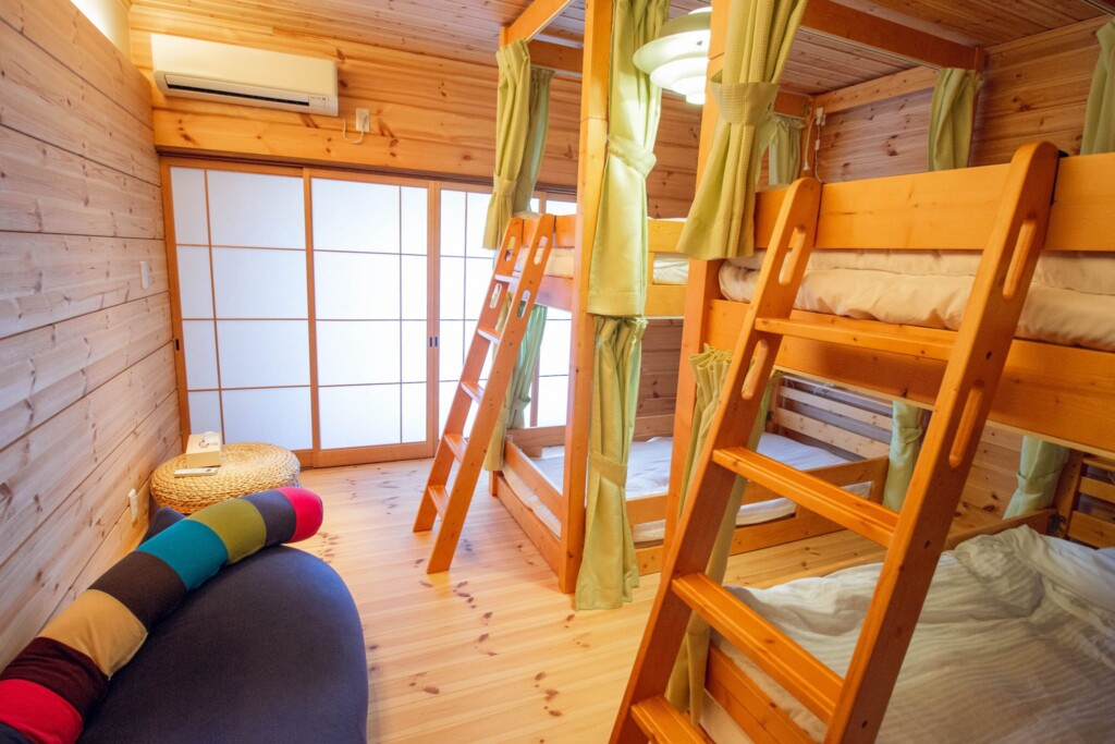 「MOKU」「TUTI」「WAFU」の3種類の部屋。ドミトリールームの「MOKU」のお部屋は2段ベッドが並ぶポップな雰囲気が印象的だ。「最初は一人旅のバックパッカーやビジネスマンの方に泊まってもらってたんですけど、最近はお子様連れのご家族が貸し切りにされることも多くなっています」一方で「TUTI」の部屋。旅する女性グループをイメージした。「WAFU」は純日本らしい部屋となっている。「もともと床の間が綺麗だったので、ほとんど弄らず残してもらいました」年配のご夫婦や海外の方を想定したのだろうか。畳の部屋ならではの落ち着いた雰囲気が印象深かった。
