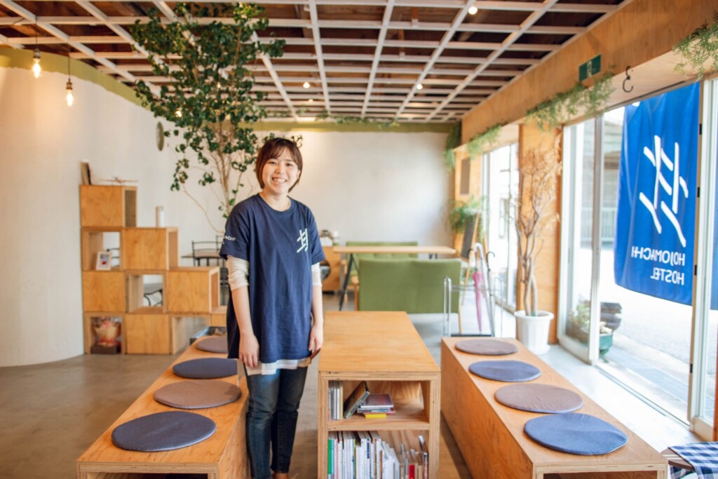 2019年4月22日にオープンした「HOJO MACHI HOSTEL」。かつて在郷町として発展してきた兵庫県加西市の北条旧市街地にあるゲストハウスだ。もとは病院で看護師をしていたというオーナーの岩國万里亜さん。